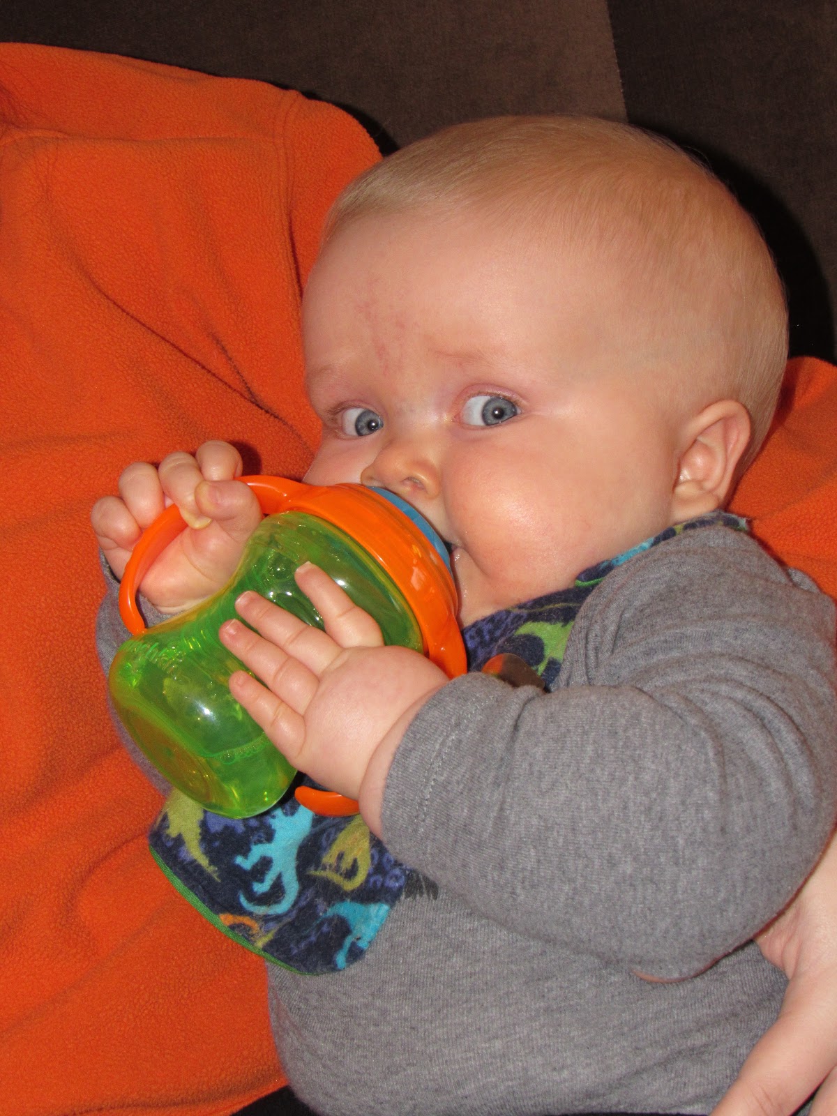 A big boy, Jason, learning how to drink out of a big boy cup