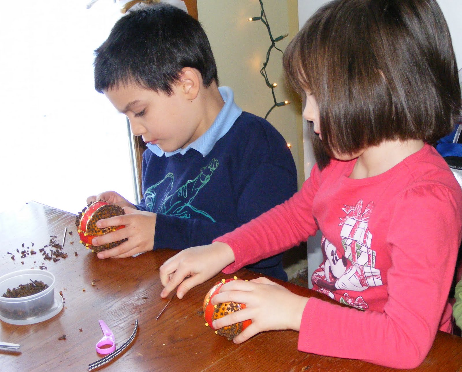 I believe these two little folks put more than 3/4 of the cloves into the oranges....the big kids quit quite early in the process.